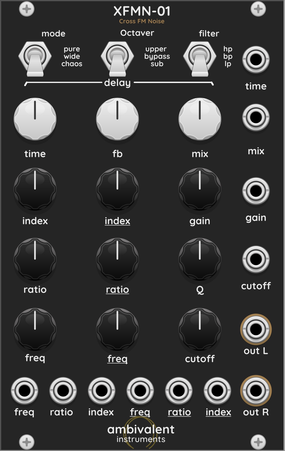 Cross-FM noise synthesizer with several effects