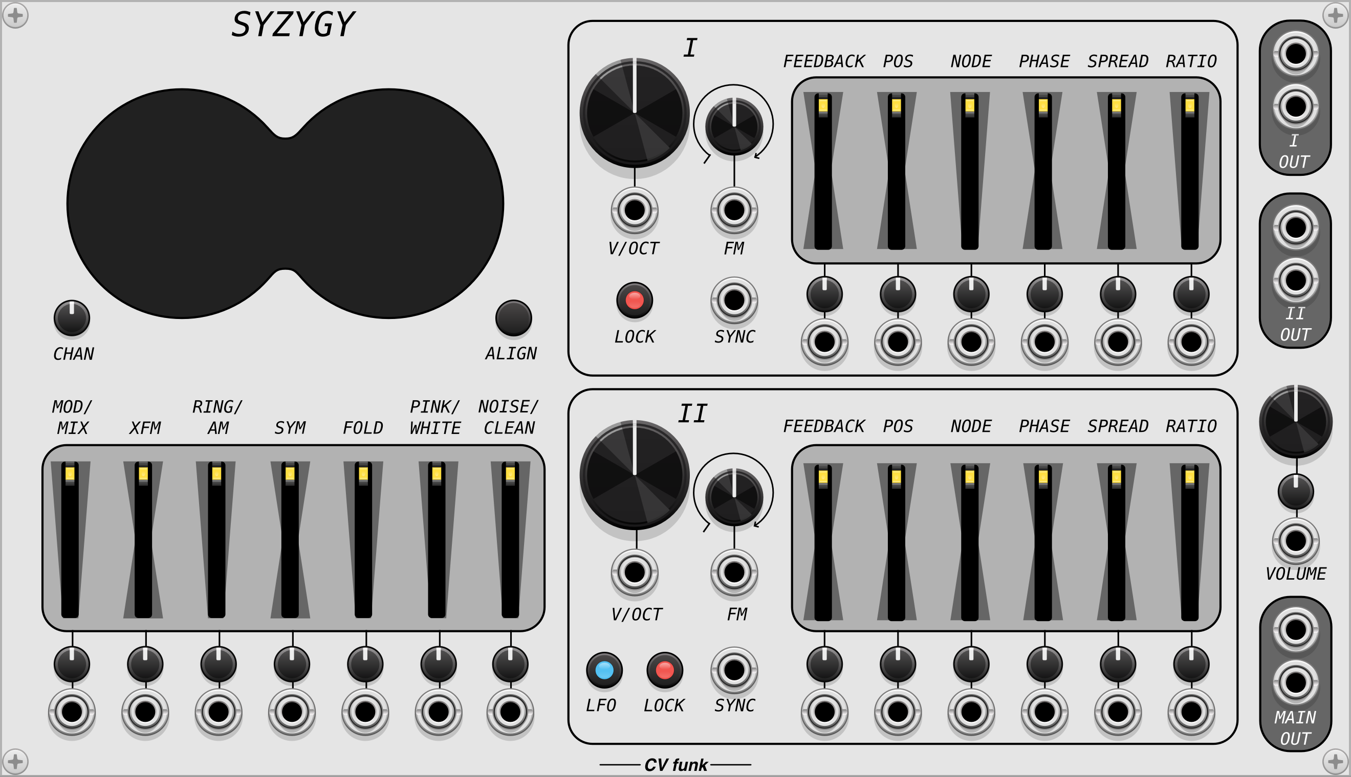 A polyphonic stereo oscillator that merges two distinctive voices, allowing you to fade, crossmodulate, wavefold and mix in pink/white noise for unique additive synth sounds.