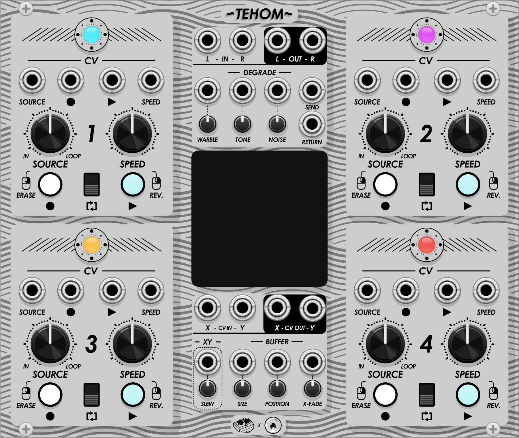 Collaboration with Omri Cohen. Quad sound on sound looper with wow & flutter + built in loops of noise sources.