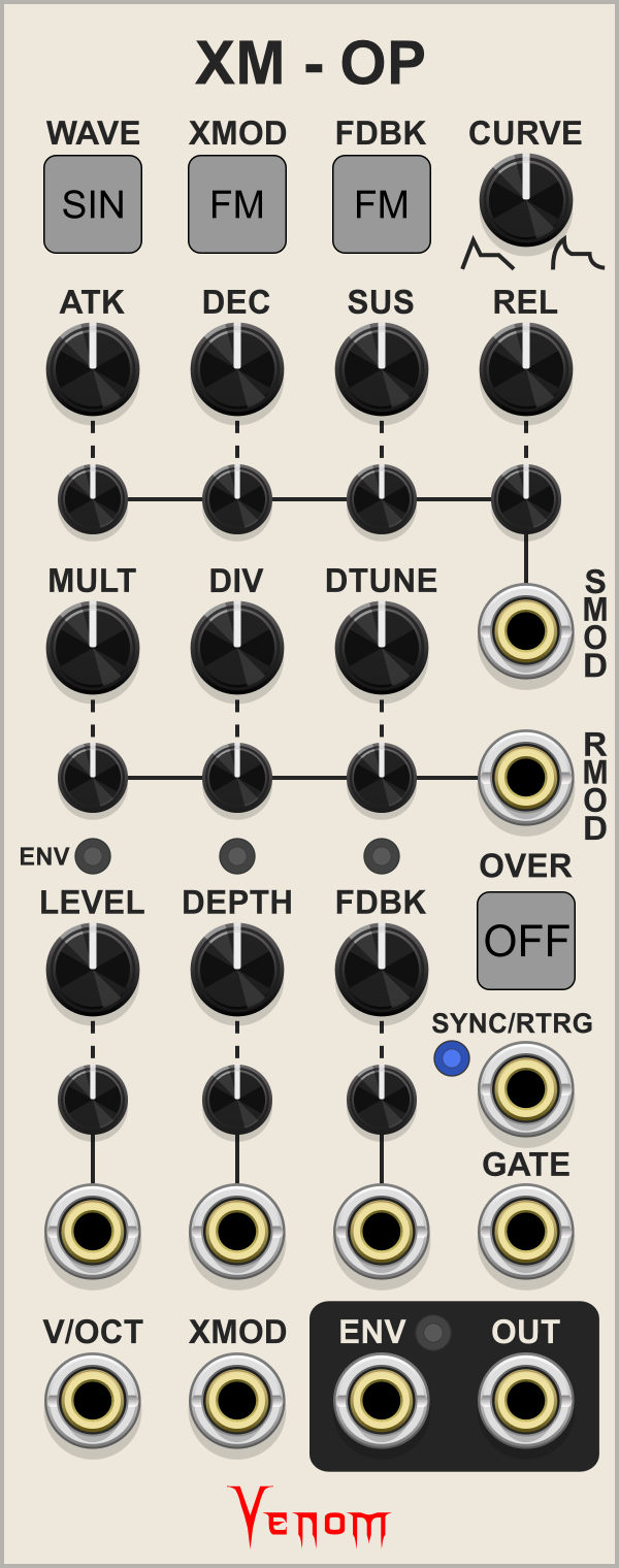 Polyphonic synth voice with selectable waveform, modulation and feedback types (FM, PM, RM, AM), and integer ratios.