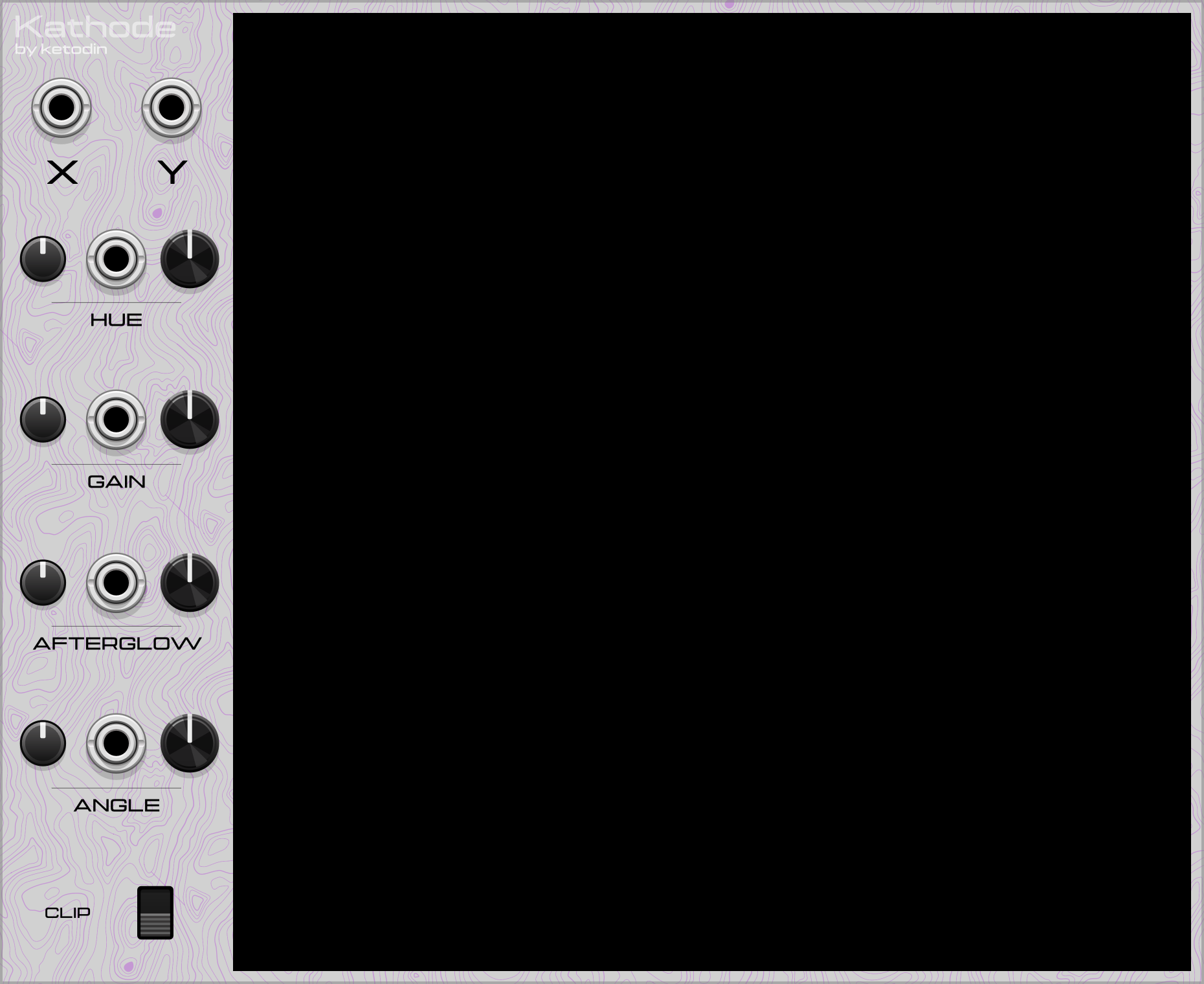 XY Lissajous oscilloscope visualizer with CV-controlled hue, gain, afterglow and rotation.